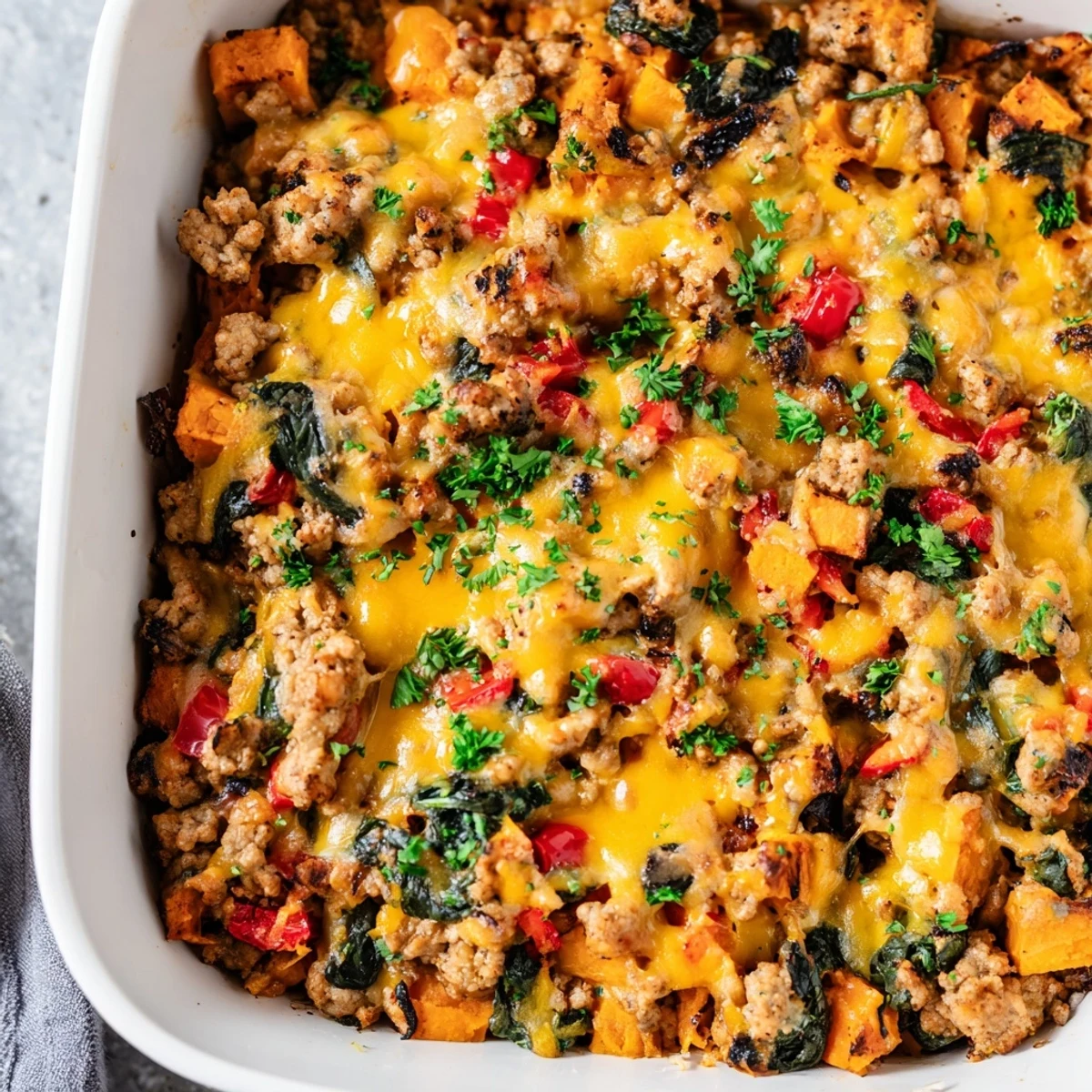 This satisfying one-dish meal combines lean ground turkey with naturally sweet potatoes and colorful vegetables for a nutritious family dinner. The turkey gets seasoned with smoky paprika, thyme, and cumin, then layered with diced sweet potatoes in a baking dish. After 40 minutes in the oven, everything becomes tender and flavorful. Optional cheddar cheese adds a creamy finish, while fresh parsley brightens the presentation. Perfect for meal prep and easily adaptable with different proteins or extra vegetables.